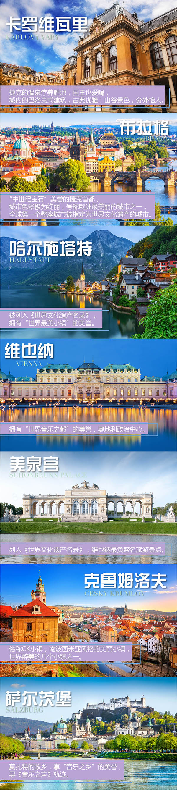 捷克:捷克的溫泉療養(yǎng)勝地卡羅維瓦里,城內(nèi)的巴洛克式建筑,古典優(yōu)雅;山谷景色,分外怡人。捷克首都布拉格,全球第一個(gè)整座城市被指定為世界文化遺產(chǎn)的城市。