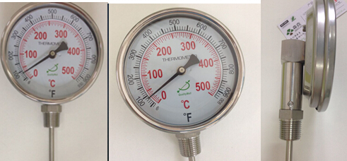 從上面的原理可以知道了吧?雙金屬溫度計只能做到500C,所以,跟這個客戶講了一下,接受了500C的雙金屬溫度計!