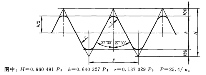 G螺紋為英制55°非密封管螺紋,國家標準為 GB/T 7307-2001,牙型見下圖。