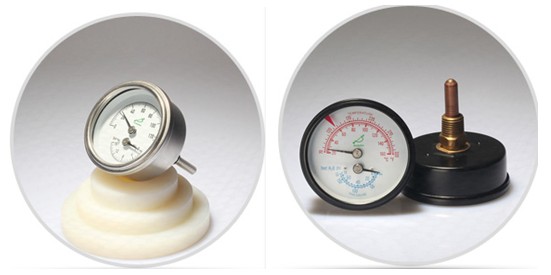 溫度壓力一體表也叫水高計,它可以測量壓力 PSI 和 KPA,及水溫的攝氏度和華氏度??捎玫谋肀P大小是70mm 和 80mm。配有設定點指示器,另外,牙頭、感溫管長度和溫度范圍可以根據(jù)需要定制。還可以做全不銹鋼、黑鐵殼及銅結(jié)構(gòu)的水高計。水高計是專門為熱水供熱系統(tǒng)、熱水鍋爐、游泳池等設備設計的,可以給出一個快速和準確的溫度指示。