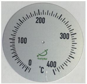 雙金屬溫度計(jì)表盤溫度范圍:‐80~550C, 特殊的溫度范圍和印刷根據(jù)客戶要求定制。
