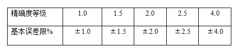 精度是表示觀測(cè)值與真值的接近程度,這對(duì)測(cè)量?jī)x表來(lái)說(shuō)是一個(gè)比較重要的參數(shù),也是衡量?jī)x表質(zhì)量?jī)?yōu)劣的重要指標(biāo)之一。雙金屬溫度計(jì)的精確度等級(jí)常用的一般是1.5,其他還有1.0,2.0,2.5,4.0。在雙金屬溫度計(jì)國(guó)標(biāo)JB/T8803-1998中有明確規(guī)定,基本誤差不超過(guò)下表規(guī)定的基本誤差限,基本誤差以溫度計(jì)量程的百分?jǐn)?shù)表示。