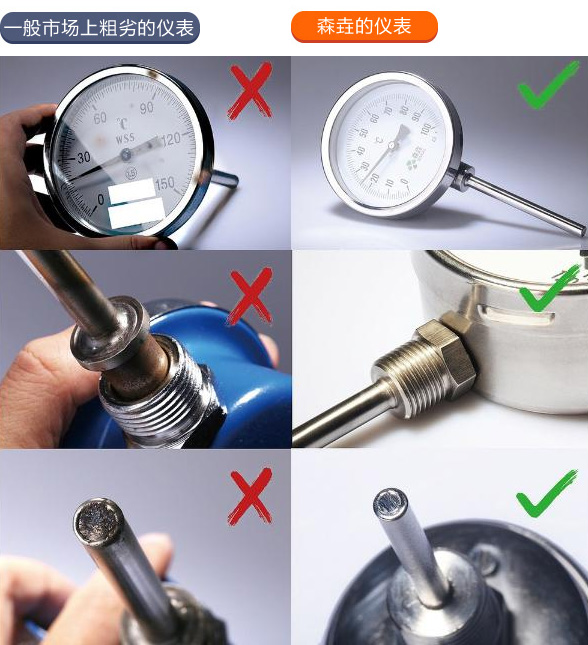 下面來對(duì)照一下雙金屬溫度計(jì)的質(zhì)量,希望在選擇是可以給您帶來幫助!
