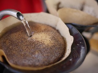 手沖咖啡的第一步就是用手搖磨豆機磨咖啡豆,然后將折好的濾紙放在濾杯中,將熱水均勻的沖在濾紙上,使濾紙全部濕潤,緊緊貼附在濾杯上,再將磨好的咖啡粉倒入濾杯中,輕輕拍平,于咖啡粉上均勻注水約咖啡粉克數的1.5倍水量,燜蒸,注水,萃取,得到的就是我們美味的咖啡了。
