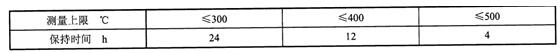 8.     熱穩(wěn)定性,溫度計的檢測元件在測量上限保持下表規(guī)定的時間后,其基本誤差扔應符合規(guī)定。