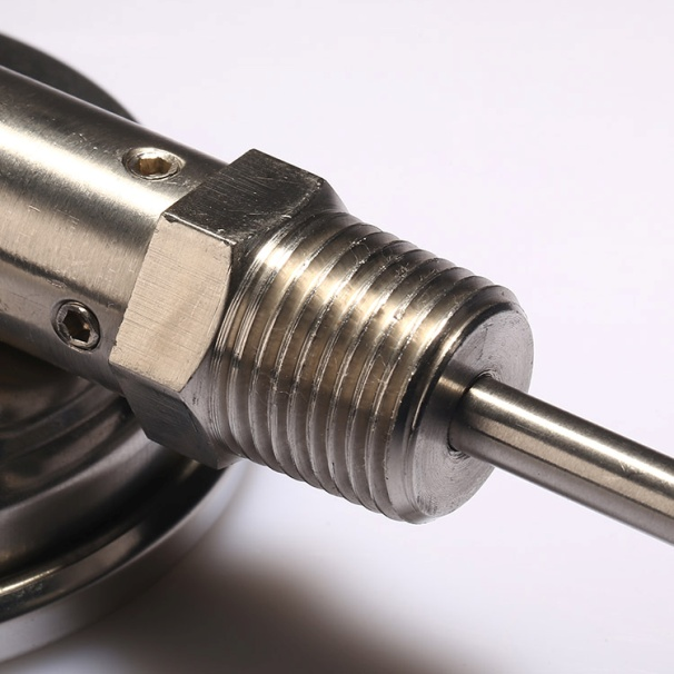 森垚儀表回答:雙金屬溫度計(jì)應(yīng)用于工業(yè)、石油、化工、供熱系統(tǒng), 管道, 發(fā)電廠,船用等。為了滿足不同領(lǐng)域,為了滿足不同設(shè)備的特點(diǎn),適應(yīng)實(shí)際生產(chǎn)的需要,安裝固定裝置:無固定裝置、 可動(dòng)外螺紋、 可動(dòng)內(nèi)螺紋 、固定螺紋、固定法蘭、 卡套螺紋、螺牙可按照客戶要求定制;現(xiàn)在市面上常用的雙金屬溫度計(jì)螺牙:1/4”和 1/2”NPT/BSP 固定牙,如果要定制不同規(guī)格的螺牙,下訂單時(shí)備注螺牙規(guī)格就可以了。