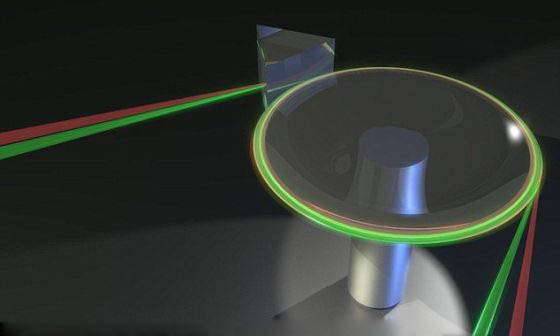 這項(xiàng)最新研究報(bào)告發(fā)表在《物理學(xué)評(píng)論快報(bào)》雜志上,“納米開(kāi)氏溫度計(jì)”是將紅色和綠色光線數(shù)千次循環(huán)在盤(pán)狀水晶邊緣?;谒囟炔町愋裕@兩種光線傳播的速度略有不同。