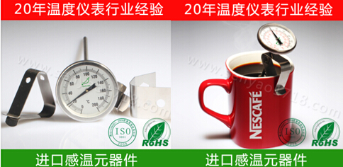 當森垚儀表業(yè)務員接到這個客人的電話時,就感覺他是一個細心的人,為什么這么說呢!他剛開始不知道想要的是一款什么樣的溫度計,就只知道是使用在咖啡壺上的溫度計,當他把自己需要使用的溫度范圍、想要的溫度計尺寸、外觀、大小、想達到什么效果等等一些問題給我們說了以后,才知道這位客人需要一款PT型的雙金屬溫度計,所以我們就把我們類似的食品溫度計PT1435的圖片給他看了一下。