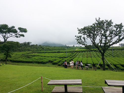 下圖:茶園,遠(yuǎn)處是漢拿山