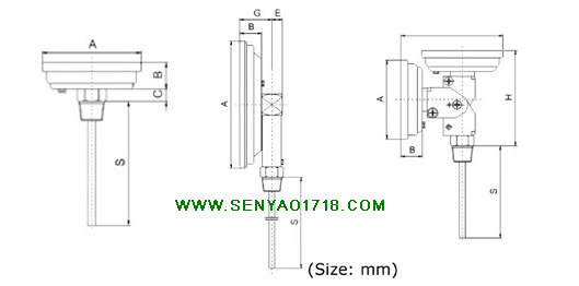 (1)角型(軸向型) 檢測元件軸線與標(biāo)度盤平面垂直的形式,也稱軸向型。,