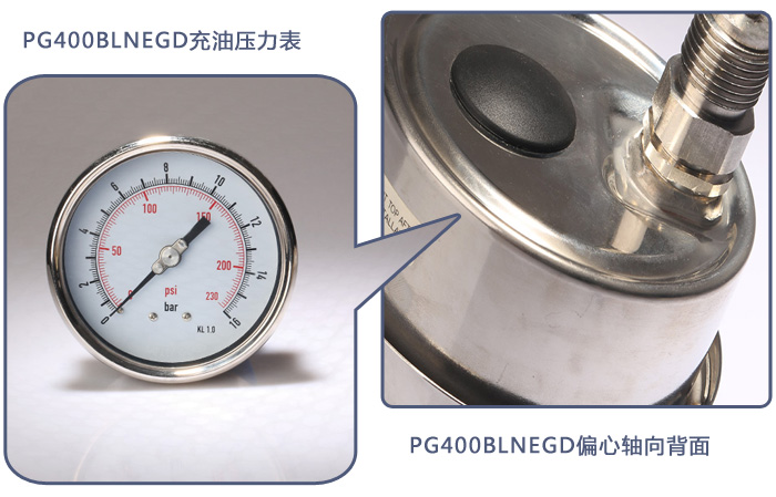 偏心軸向充油壓力表 型號:PG400BLNEGD